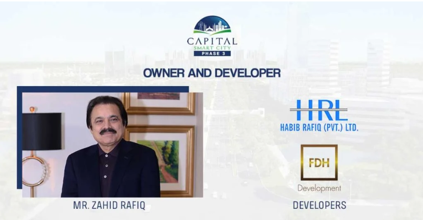 Capital Smart City is a project by Future Development Holdings (FHD), a premier real estate firm specializing in smart urban developments, in collaboration with Habib Rafiq Pvt. Ltd. (HRL)—a name trusted for delivering high-quality projects like Bahria Town and DHA in Islamabad. While FHD focuses on building luxurious and sustainable communities, HRL contributes decades of experience in executing large-scale infrastructure and residential projects.