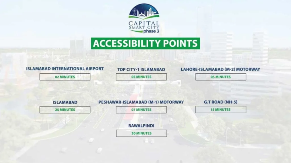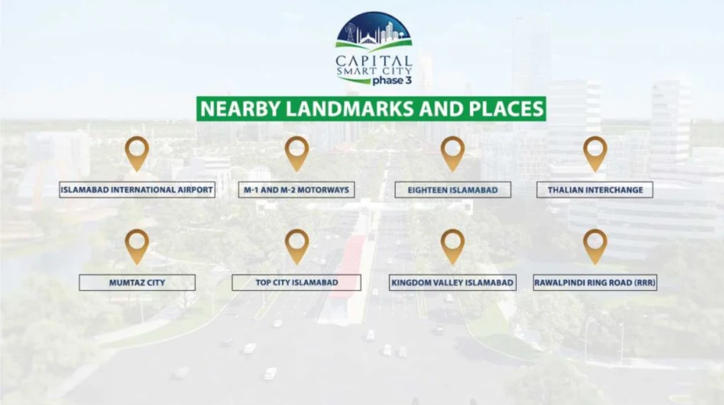 Its strategic position offers the perfect blend of airport proximity, motorway connectivity, and access to surrounding developments and modern infrastructure. These factors combine to make Capital Smart City Phase 3 one of the most well-placed and promising real estate ventures in the twin cities.